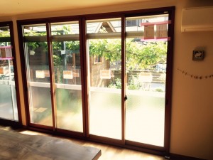 ♡リビング二重窓(インプラス)ブラウンの木枠にして素敵なリビングがもっとモダンに!素敵に!