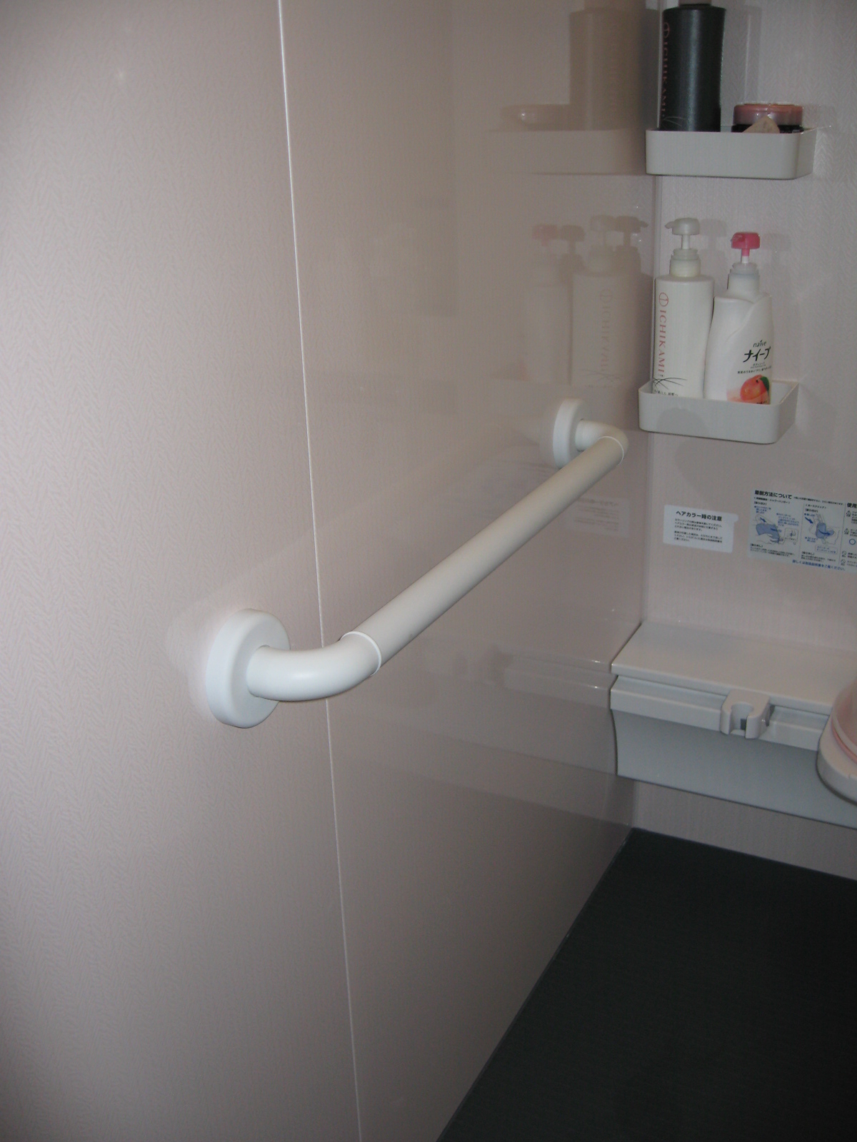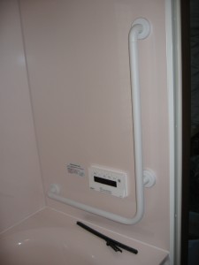 2か所の手すりと、シャワーとっての部分が手すり兼用スライドバーに・・・・!安心です(^v^)。⇓ AFTER