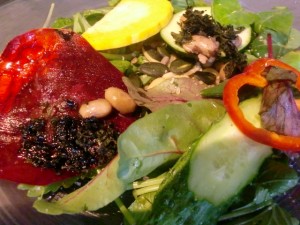 ☆軽井沢に来た気分に浸りたくて! ♡おしゃれなレストランでオーガニック料理(体に良さそう・・・・)千葉では食べたことのない、なまのかぼちゃ・その他、数種類の野菜がサラダに!!歯ごたえがあり美味しかったです(^v^)。このレストランは食物アレルギーの方にも食べることができる、食材で調理されていて、一緒に行った2歳の子も食物アレルギーなのですが、安心してお肉やデザートまでたべることができました。♪ごちそうさまでした。(^^)v